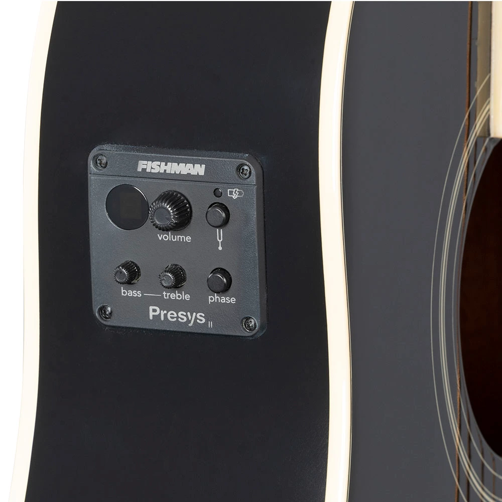 La clásica J-45 con hombros redondeados y acabado Vintage Sunburst. Esta versión electroacústica destaca por su tapa de abeto sólido y construcción de caoba, brindando el legendario tono balanceado de Gibson. Incluye cutaway para mayor comodidad y sistema Fishman Sonitone para un sonido natural amplificado. Una guitarra versátil, confiable y con una estética vintage inigualable.